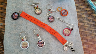 OMG. I need to share. Just received this from super fan Stracey!!!!!! God love her. My first fan swags created for my novels!! Wish you could see the little charms..there is a coin, A ROLLING PIN (love it!!!), a gun, a basket. OMG. I am in high heaven. Will use all of this proudly while I am ambling the halls during the RWA Convention in NYC in July. Hot damn!!!