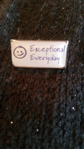 Ok. This pin has a smiley face. So, what do the words following really mean? Is it that the smiley face is a mirror of how I should look every day? Or is it that I’m exceptional every day? Or is it that this everyday is exceptional? Or is the everyday smile exceptional? Or is every day made exceptional by smiling? Or are everyday smiles exceptional, so I should smile every day?